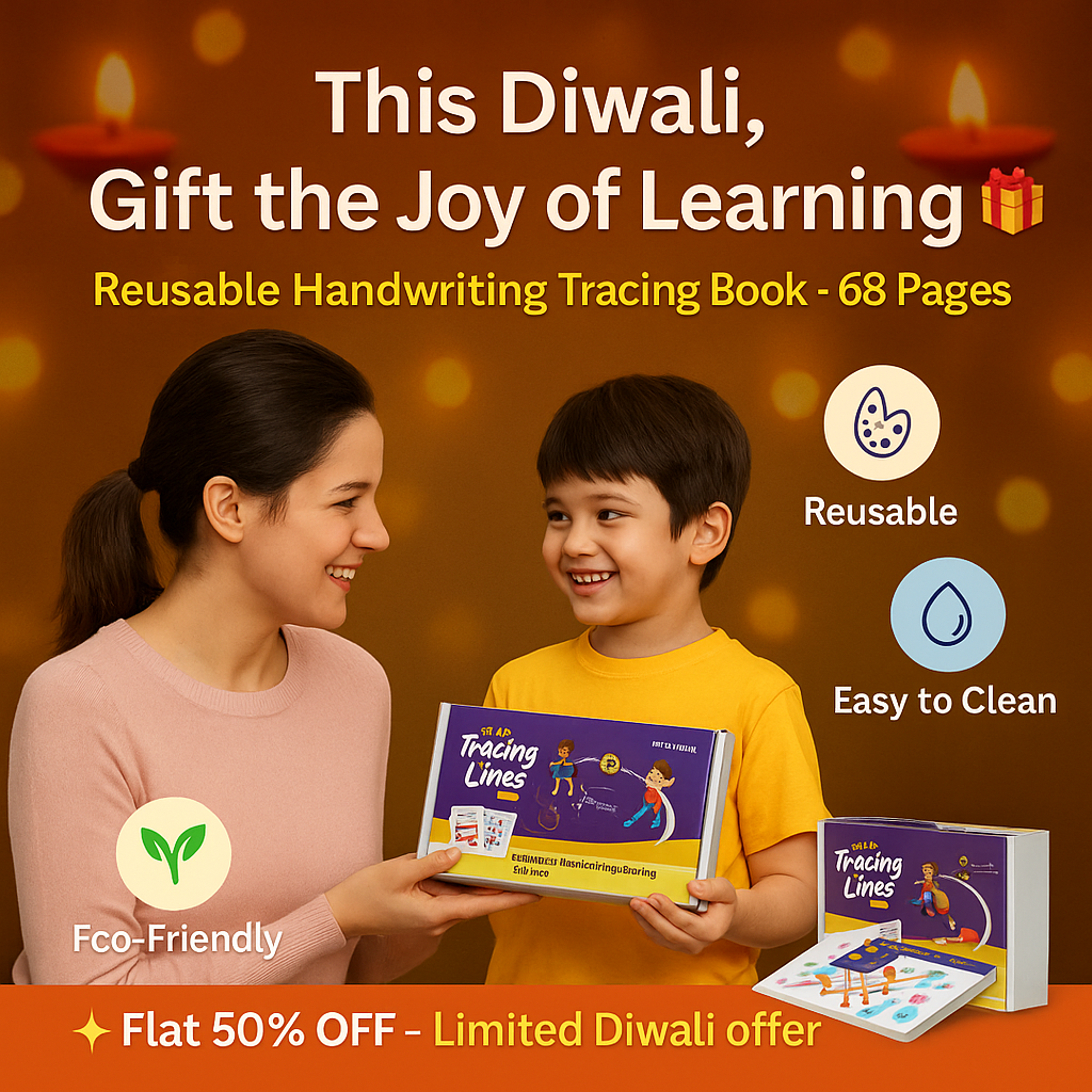 You’ll get the 68-page reusable tracing book — all at a special 50% OFF Diwali price